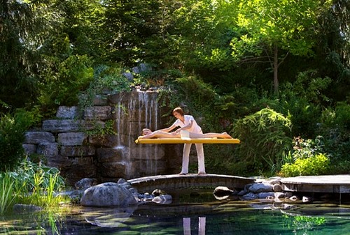 crois tu que les températures seront assez clémentes pour envisager le massage au bord de l eau ?! :D (euh d ailleurs c est bizarre car la table de massage et la dame qui est posée dessus sont en suspension dans les airs…)