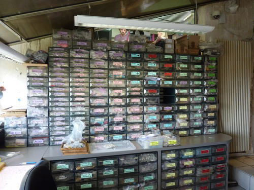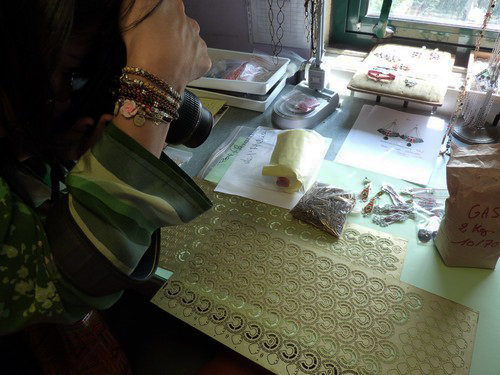 J’étais hyper heureuse de découvrir tout ça, et pas seulement parce que les journalistes n’ont quasiment jamais été admis dans ce qui est quand même un peu un sanctuaire : J’ADORE voir fabriquer des bijoux, je ne me lasse jamais des tiroirs plein de perles et des techniques d’assemblage.