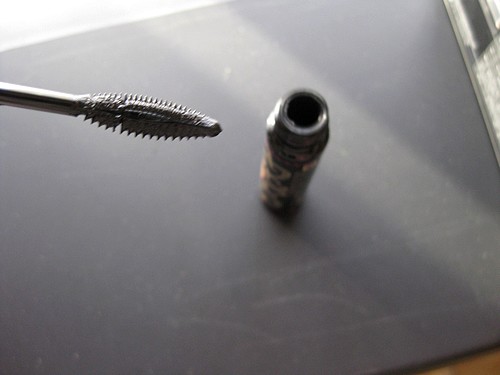 La brosse de ce mascara me fait penser à celle d’un mascara Chanel, si ma mémoire est bonne, dont les picots rigides m’avait presque éborgné un jour de maquillage à moitié réveillée…