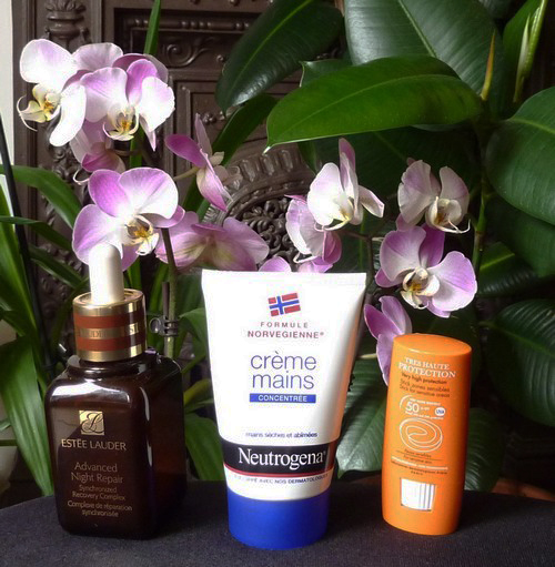 Ah ton billet me fait stresser. Moi je mets religieusement de la crème hydratante de nombreuses fois au cours de la journée, et crème solaire au moins une fois le matin. Par contre, c’est un peu stupide de ma part, mais j’ai du mal à me verser du sérum à 3000 dollars (j’utilise aussi le Advanced Night Repair) sur les mains. Je n’utilise que la quantité infinétisimale qui reste sur la pipette après l’application pour le visage… Or, c’est vrai, les mains sont tellement révélatrices de l’âge.. C’est bête de les négliger…