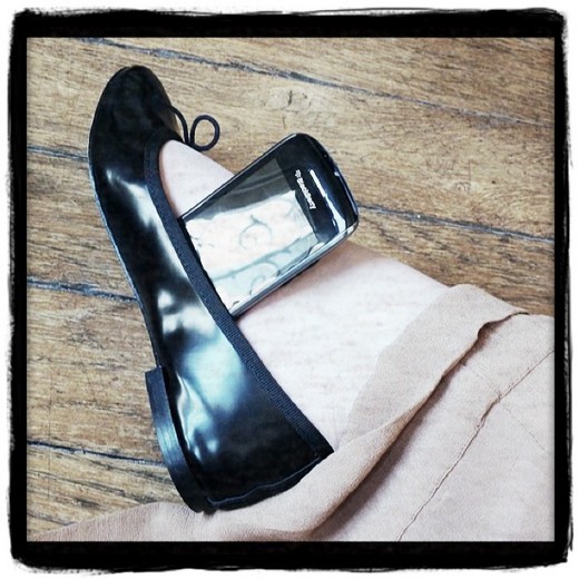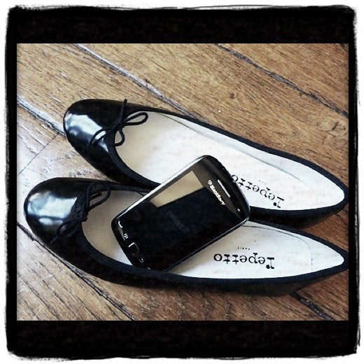 Hélène: ha ben moi c’est l’inverse ;-) j’adore les Repetto (parce que je peux les mettre à pieds nus sans souffrir le martyre) mais je suis moins fan des blackberry (trop sérieux).