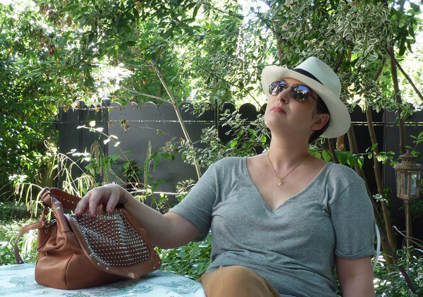Me demande si le sac et le panama sont aussi ou plus sympas que ce décor de rêve (j’adooooooore ce genre de jardinets à l’anglaise, ombragés, verdoyants dans lesquels flaner avec un bouquin (ou un verre de limonade !) …. bref bref bref …