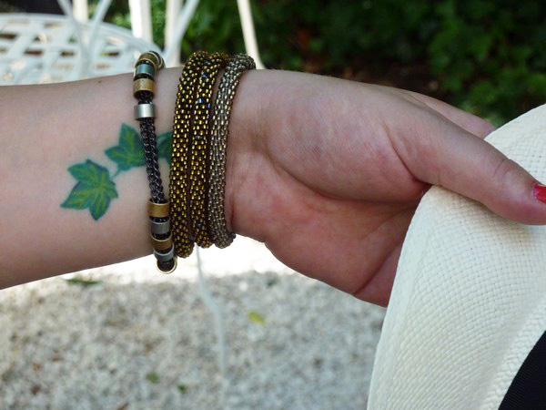 J’aime beaucoup je n’aurais pas oser cette association de couleur je suis fan de couvre chef et ce Panama est superbe, les bracelets aussi, bref très joli look!!