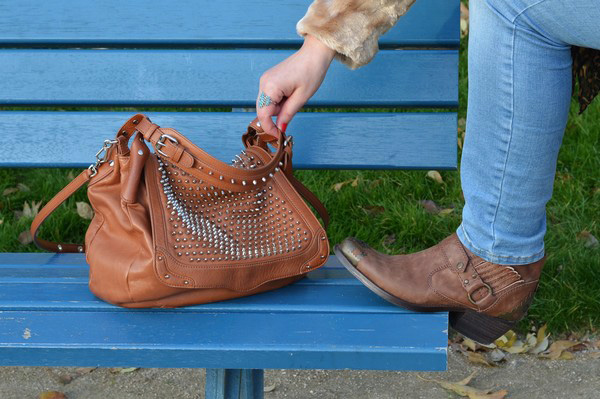 Genre la fausse fourrure de cow-boy. Ca marche aussi très bien avec des baskets (des New Balance, au hasard ;-), mais cette fois j’avais vraiment envie de porter mes chères boots Nine West.