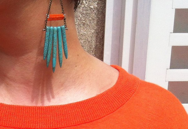 Hélène, je suis fan de tes boucles d’oreille. J’adore le style, et surtout la couleur. Je n’ose pas associer de couleurs complémentaires lorsqu’il s’agit de vêtements, par contre, je me lâche au niveau des ongles. J’ai porté cette semaine même une association de orange et de bleu, le tout dans un nailart d’inspiration indienne.