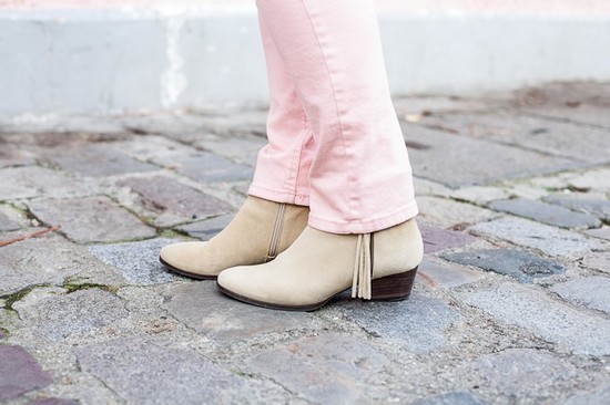 J’aime bien moi aussi mettre un jean écru avec des couleurs douces, c’est plus joli avec des boots claires. Allons, ne faisons que ce qui nous plaît!!!