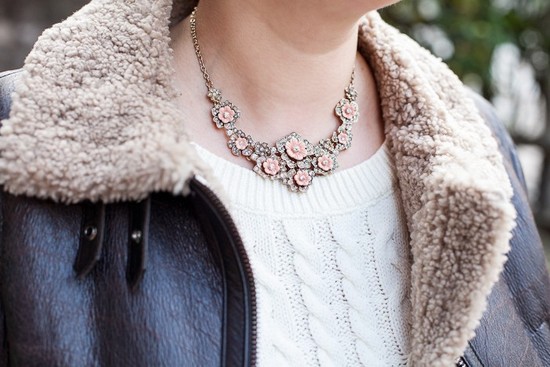 C’est une très jolie tenue! J’avoue moi-même ne pas porter de couleurs claires en hiver (ou alors seulement pour un pull beige ou blanc torsadé comme toi, quelque chose qui montre bien que c’est de la maille et donc que c’est hivernal, haha) alors que je ne jure que par le rose et le pêche en été. C’est le petit côté mimétique de la mode? Ou l’expression de notre schizophrénie à tous ;)