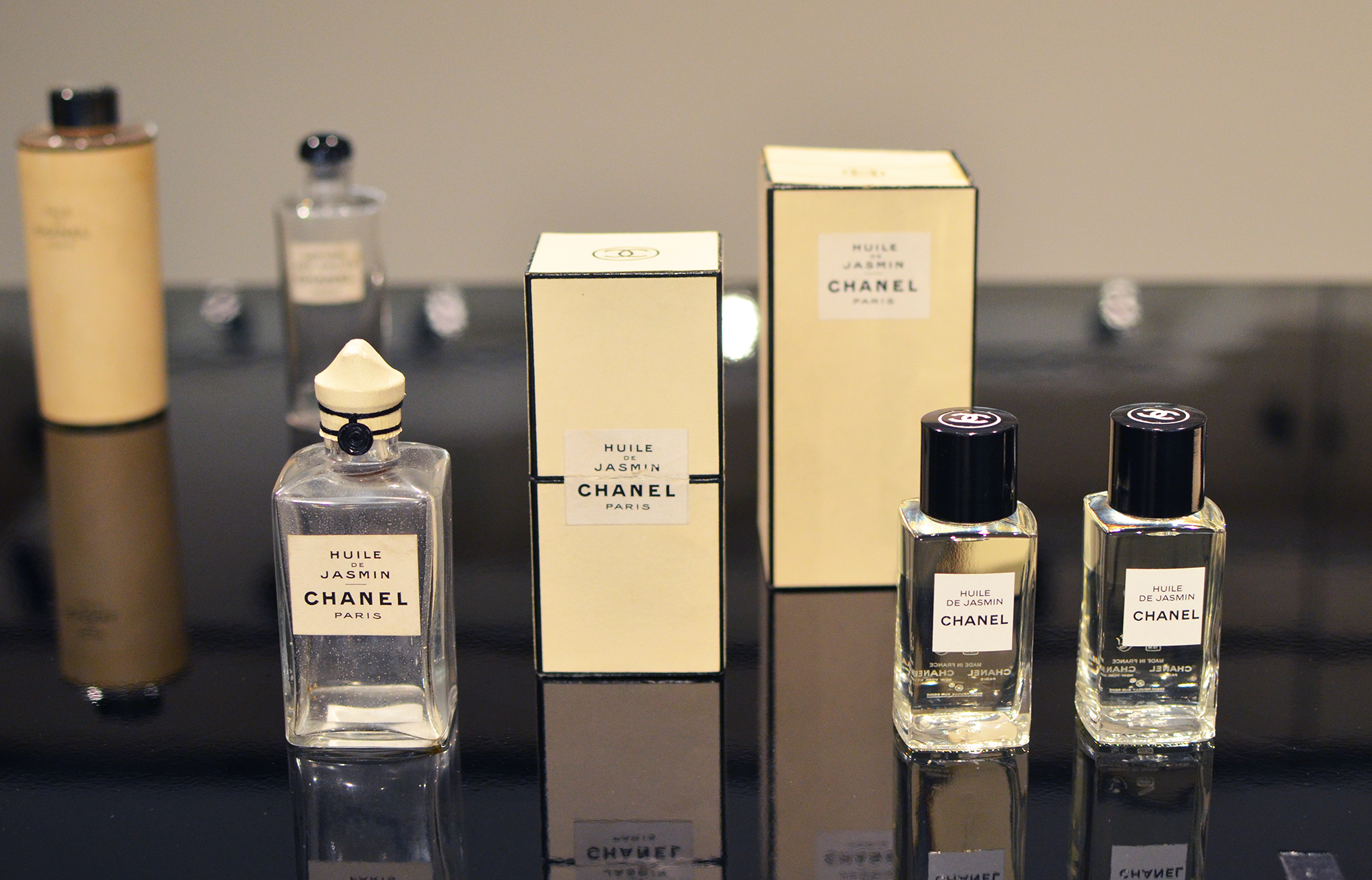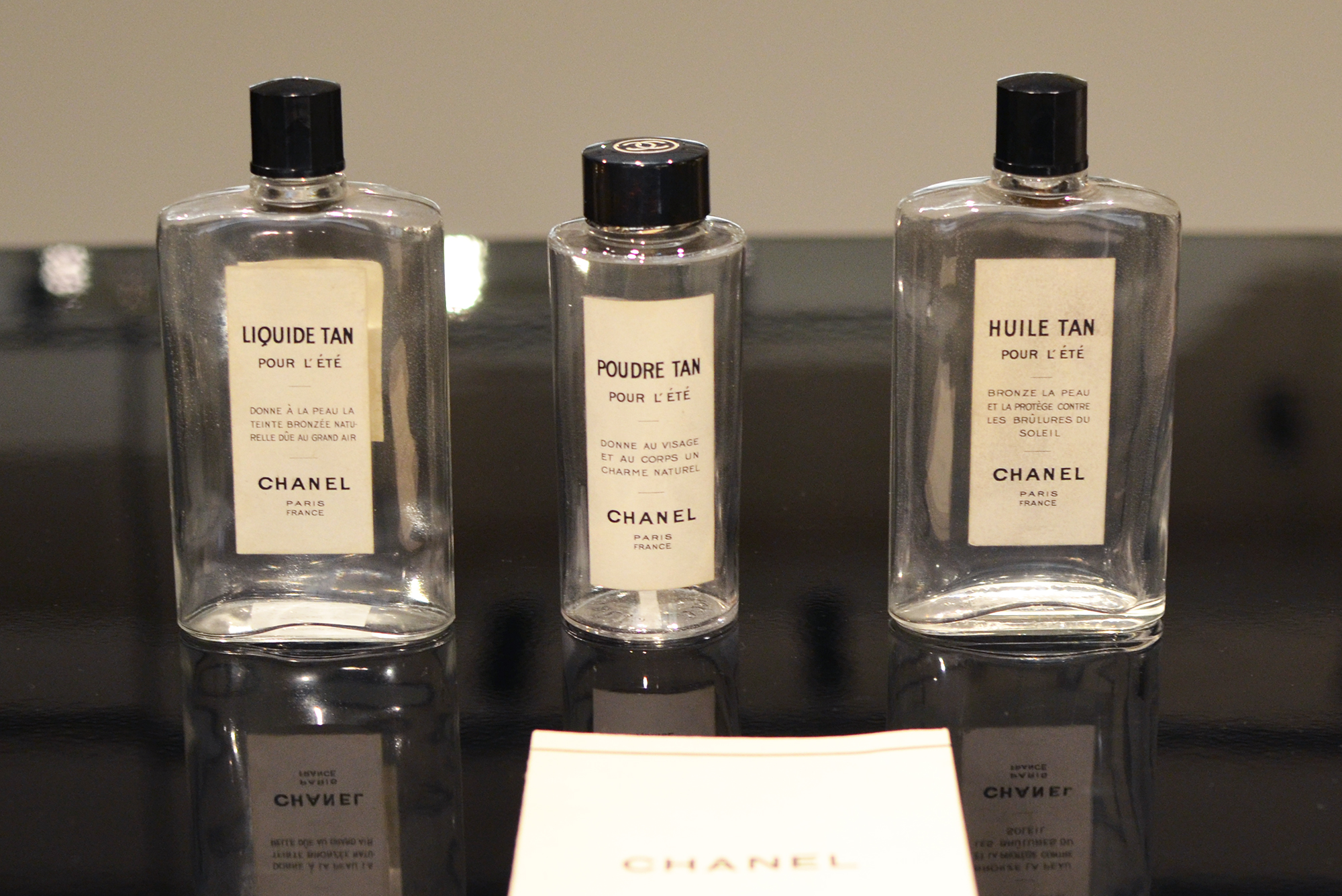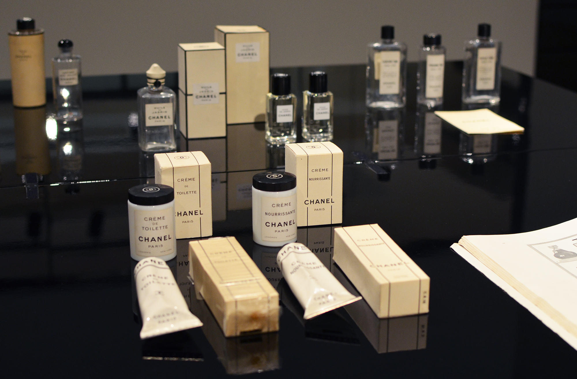 Le responsable du Patrimoine Chanel Parfums Beauté, Patrick Doucet, nous a ouvert deux tiroirs contenant des robes à couper le souffle. Il a ouvert pour nous un grand flacon de Cologne n° 5 datant d’il y a 60 ans et dont le parfum n’avait pas bougé. Il nous a montré d’anciens catalogue, déjà si actuels, à l’image des produits.