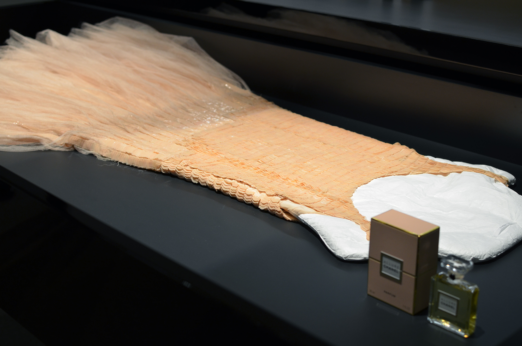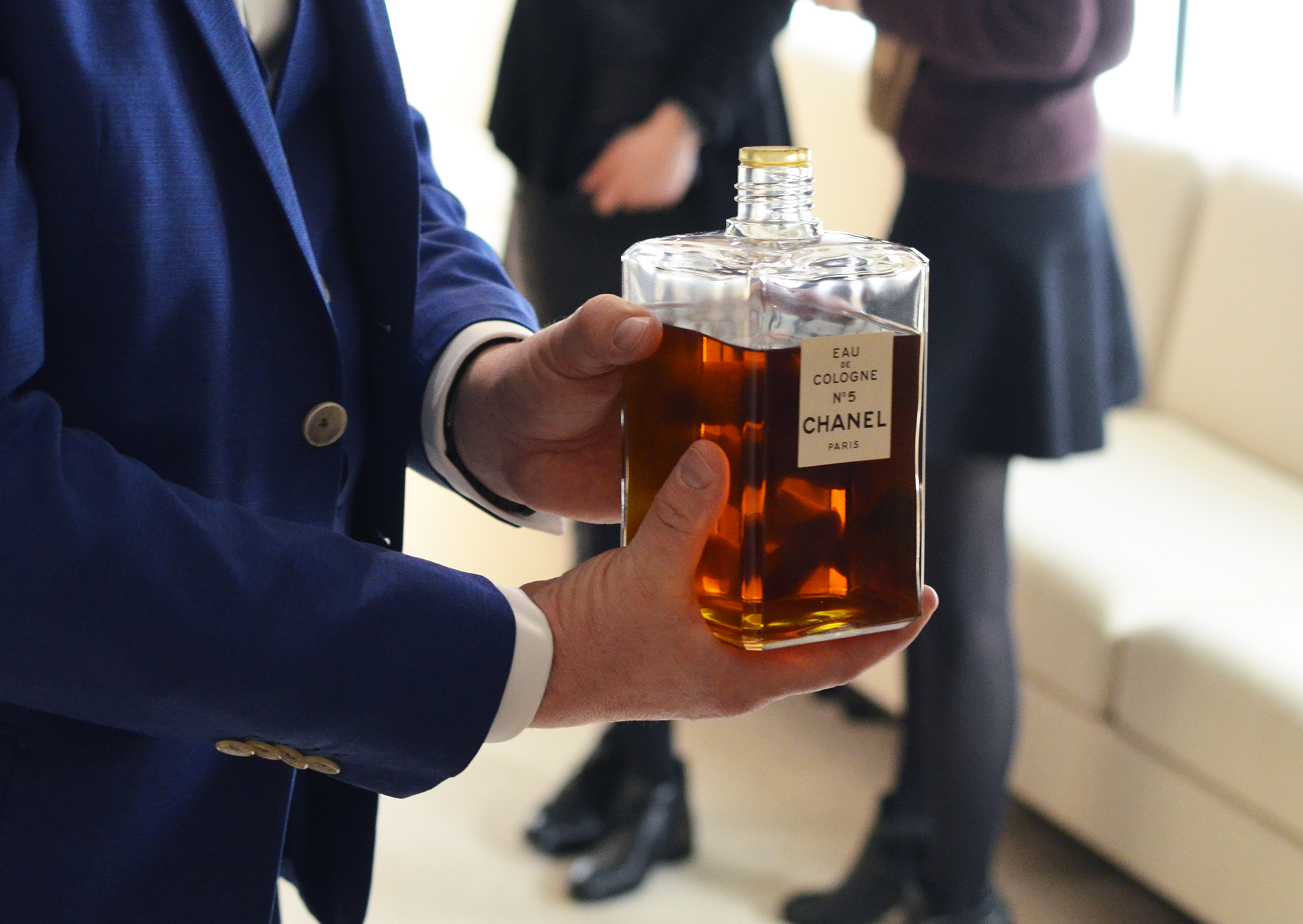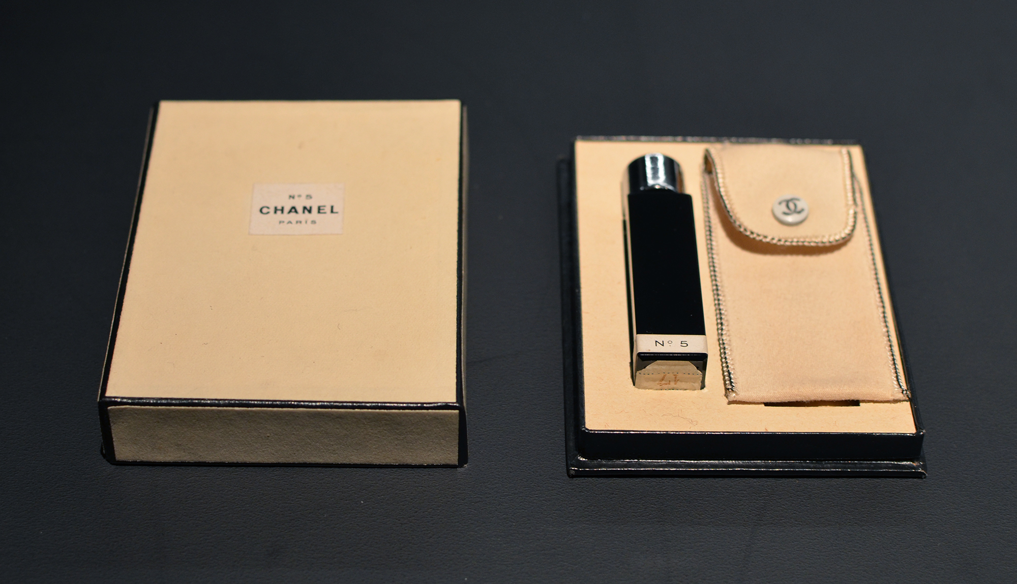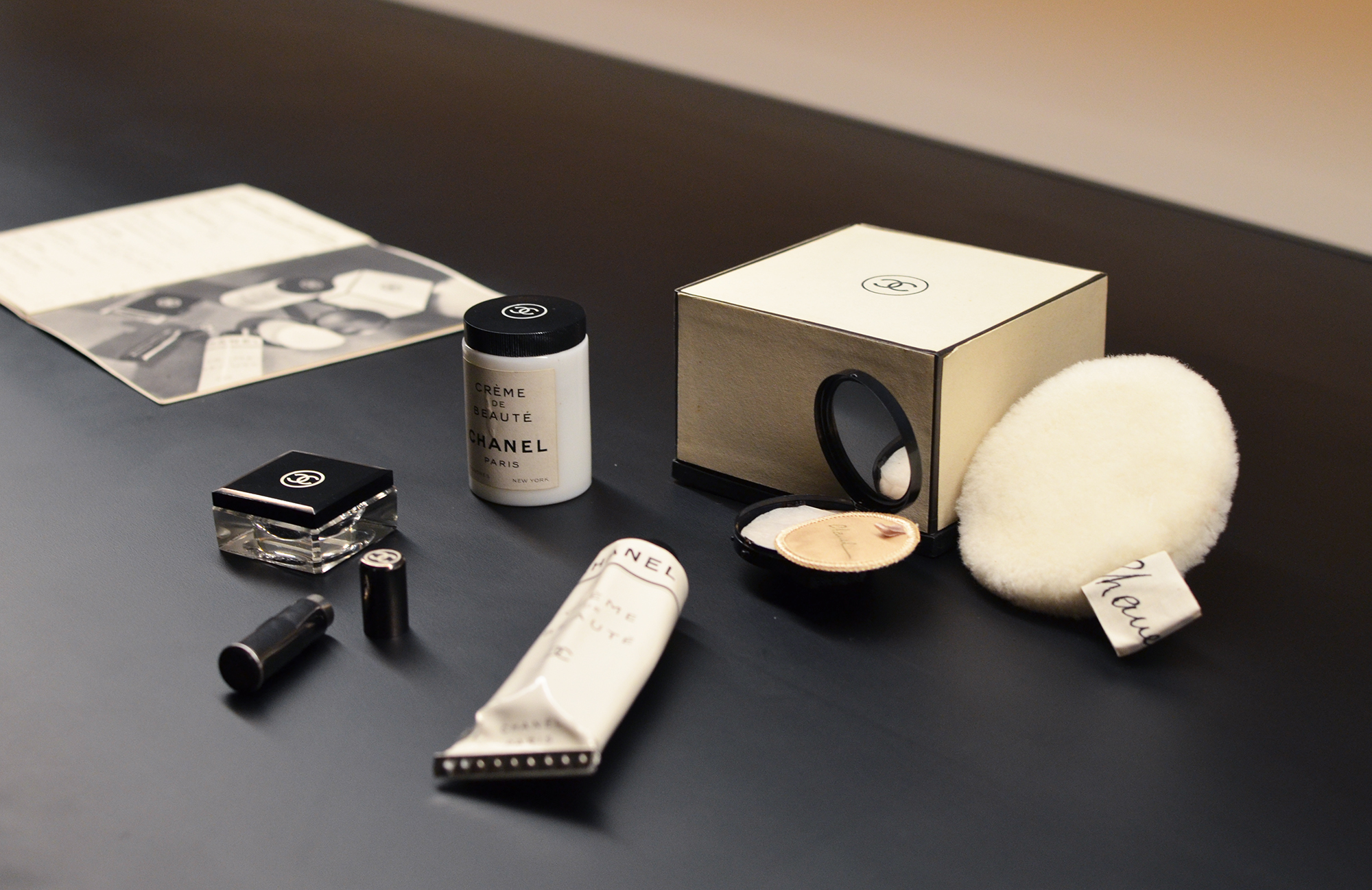 Le responsable du Patrimoine Chanel Parfums Beauté, Patrick Doucet, nous a ouvert deux tiroirs contenant des robes à couper le souffle. Il a ouvert pour nous un grand flacon de Cologne n° 5 datant d’il y a 60 ans et dont le parfum n’avait pas bougé. Il nous a montré d’anciens catalogue, déjà si actuels, à l’image des produits.