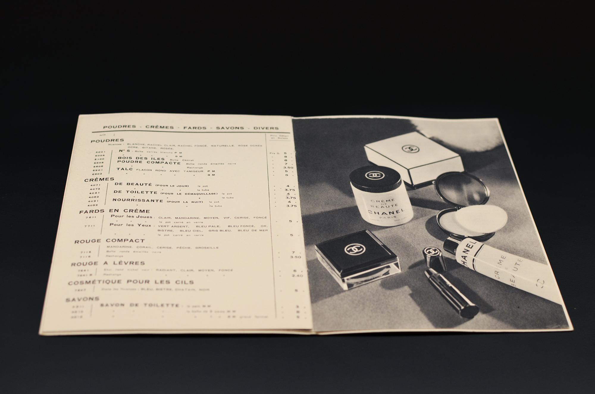 Superbe cette visite, merci de nous l’avoir fait partager. Je me damnerais pour aller jeter un oeil à tout cela. Je suis surprise, en regardant les produits proposés dans le petit catalogue de l’époque, de voir que les textures et les « innovations » cosmétiques d’aujourd’hui n’ont rien à envier à celles d’hier : blushs crème, crème de démaquillage… Tout y est déjà !