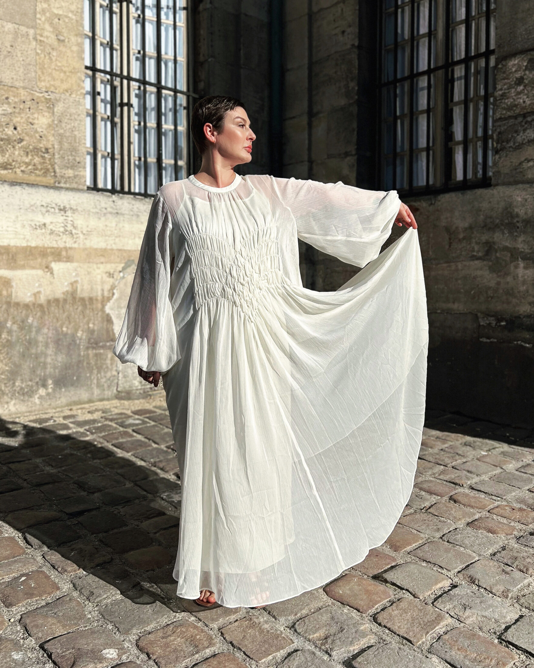 PS : Cette robe façon vestale a beaucoup d’allure !