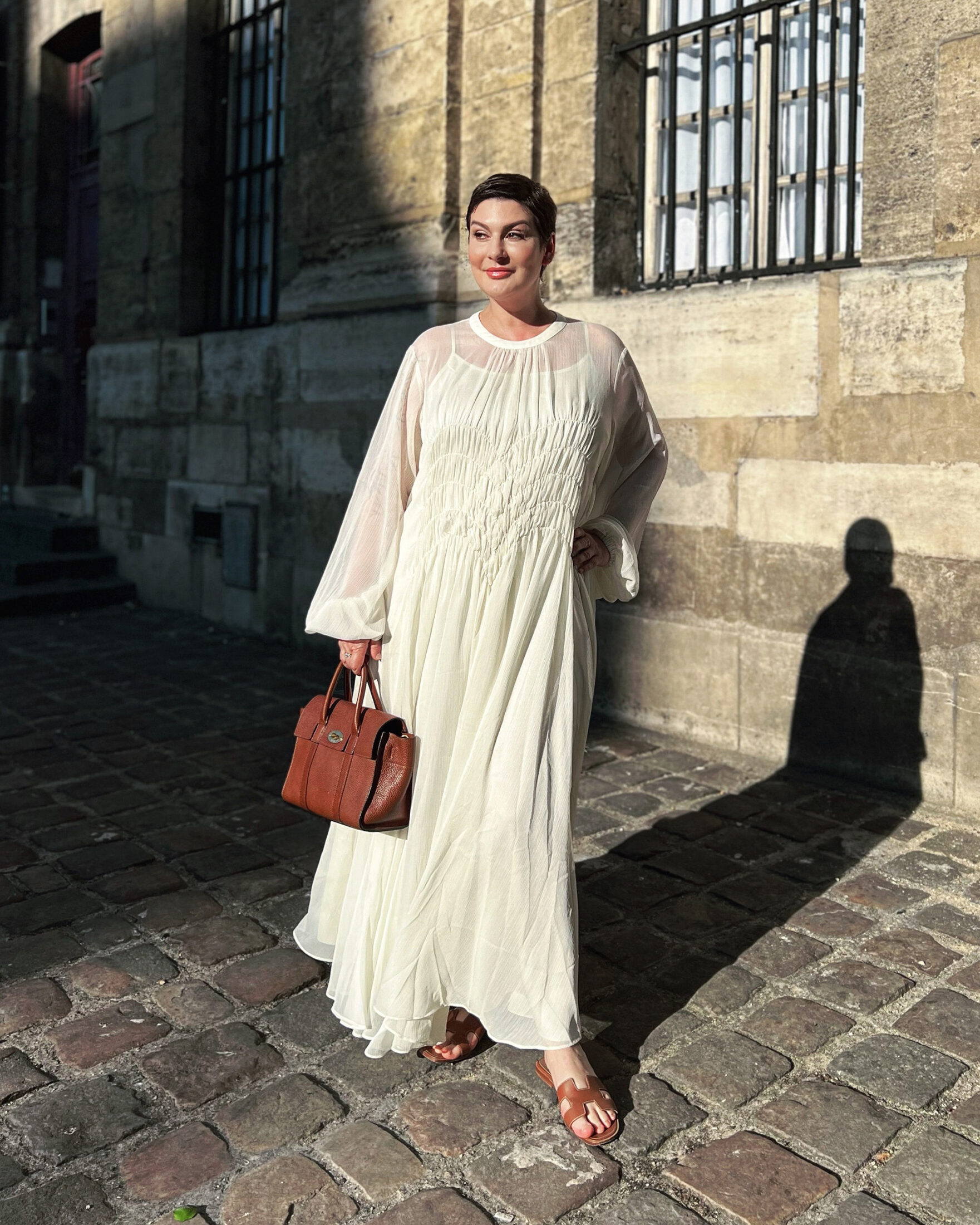 Les photos sont en tous cas très belles 🤗, et vous portez très bien cette magnifique robe à l’antique! Je crois très fort à l’idée que l’on est jolie dans une pièce qui nous convient. Car cela détermine une façon de bouger, d’oublier le vêtement finalement …💛👗👒🥿🥿