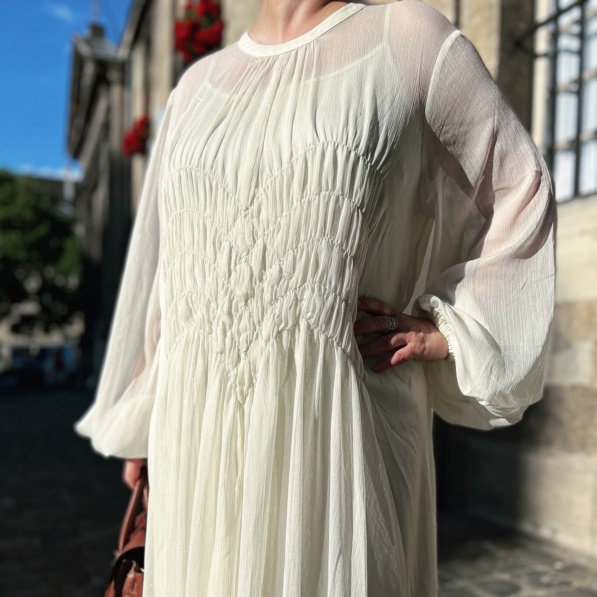 Je ne porte que des robes longues, je trouve ça joli et élégant ; j’en achète régulièrement même si je les porte peu (et pas seulement des trucs minimalistes bizarres chez Cos hein, parfois presque des robes de princesse, oui oui !).