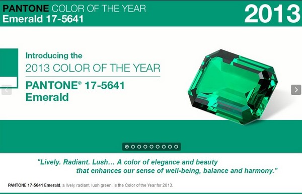 Or donc Pantone a parlé, la couleur de l’année 2013 sera le vert émeraude. Arhhhh je suis mal, j’aime pas du tout le vert (à part le kaki que j’idolâtre), je préférais le Tangerine Tango de 2012 (mais je reconnais que, sur le site de Pantone, la présentation est très jolie). Je sais, on s’en fout de mes préférences, c’est juste histoire de râler un peu et de faire mentir ma vidéo d’hier ;-))