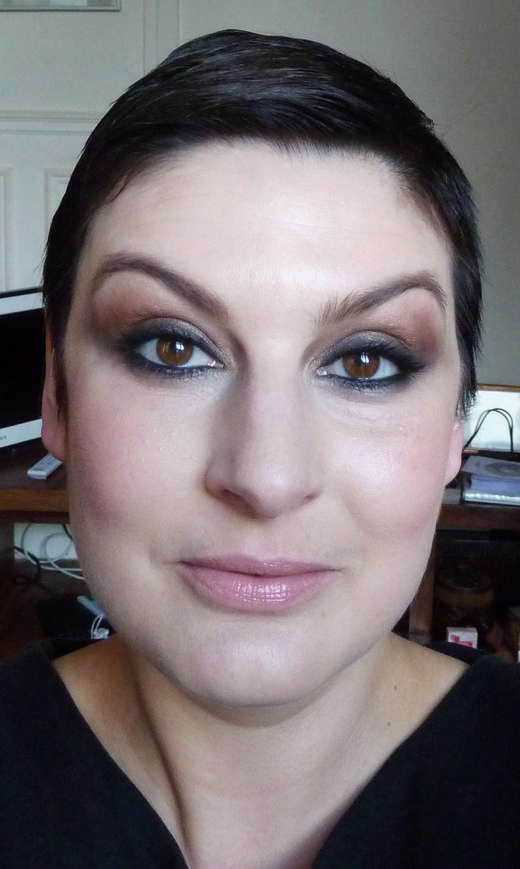 Ayant vu la vidéo hier, je viens de reproduire ce maquillage et il est juste MAGNIFIQUE!!! J’adore le mélange des tons froids avec le gun metal et des tons chauds avec le smog. En plus, commençant à devenir vraiment trop pâle pour mettre du doré en ras de cil, je trouve que c’est une bonne chose qu’il y ait la « barrière » de gris foncé: ainsi je n’ai pas l’air complètement bourrée ;-)
