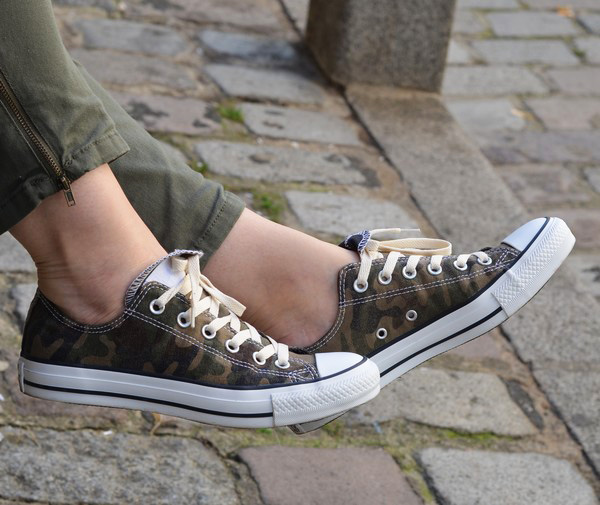 Han! j’adore ta tenue! Quelle belle allure, j’aime vraiment beaucoup, le mélange veste bien coupée et les converses camouflage, bravo!