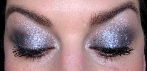 Je suis en retard pour mon commentaire mais il me manquait le matériel adéquat pour réaliser ce gris doux qui me plait beaucoup. Comme je n’avais pas la palette sleek graphite, je me suis offert deux fards Mac : Silver Ring (gris moyen) et Knight Divine (gris foncé). J’aurais dû monter un peu plus sur la paupière mobile mais j’avais peur de me louper. Je vais réitérer l’expérience et montrer mes progrès… dès qu’ils seront visibles ; )