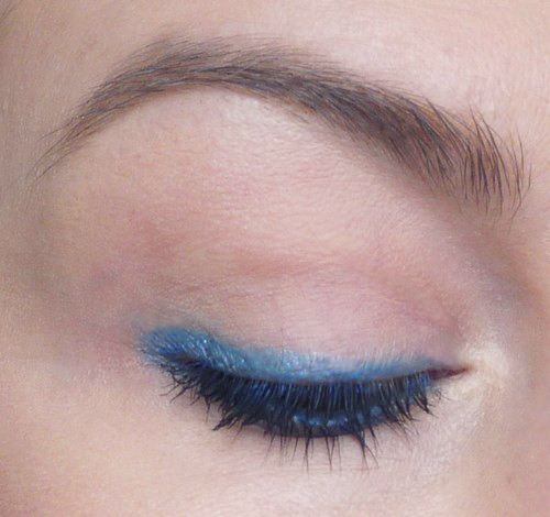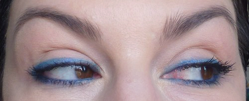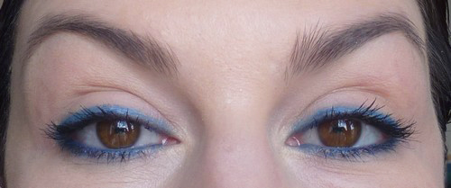 C’est beau!! et je confirme, du bleu avec des yeux verts, ça le fait !!! (moins qu’avec des yeux marrons, je l’avoue ) J’ai voulu tester avec les bleus de ma palettes sleek ( flashy les bleus…), j’avais peur du résultat, mais c’était sympa.