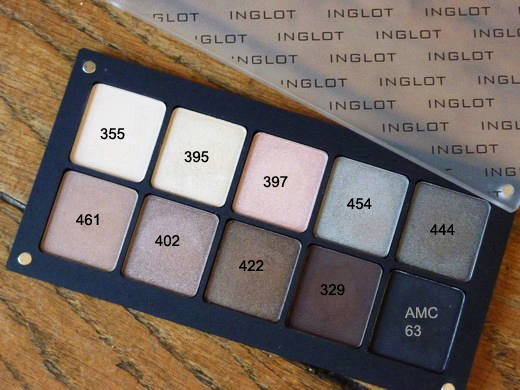 Fards poudre Inglot (palette de 10 personnalisable, achetée à IMATS)