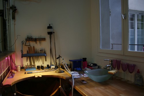 Ah ! La fameuse bague ! :) So cute en effet, tu as eu bien fait de la faire monter comme ça ! Et l’atelier c’est trop mimi, on croirait l’antre d’un Gepetto girly ! :)