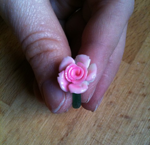 Et la tige que vous voyez sur les photos ci-dessous entre dans la rose, dans laquelle elle est fortement collée en plus d’être insérée, pour que ça tienne super bien.