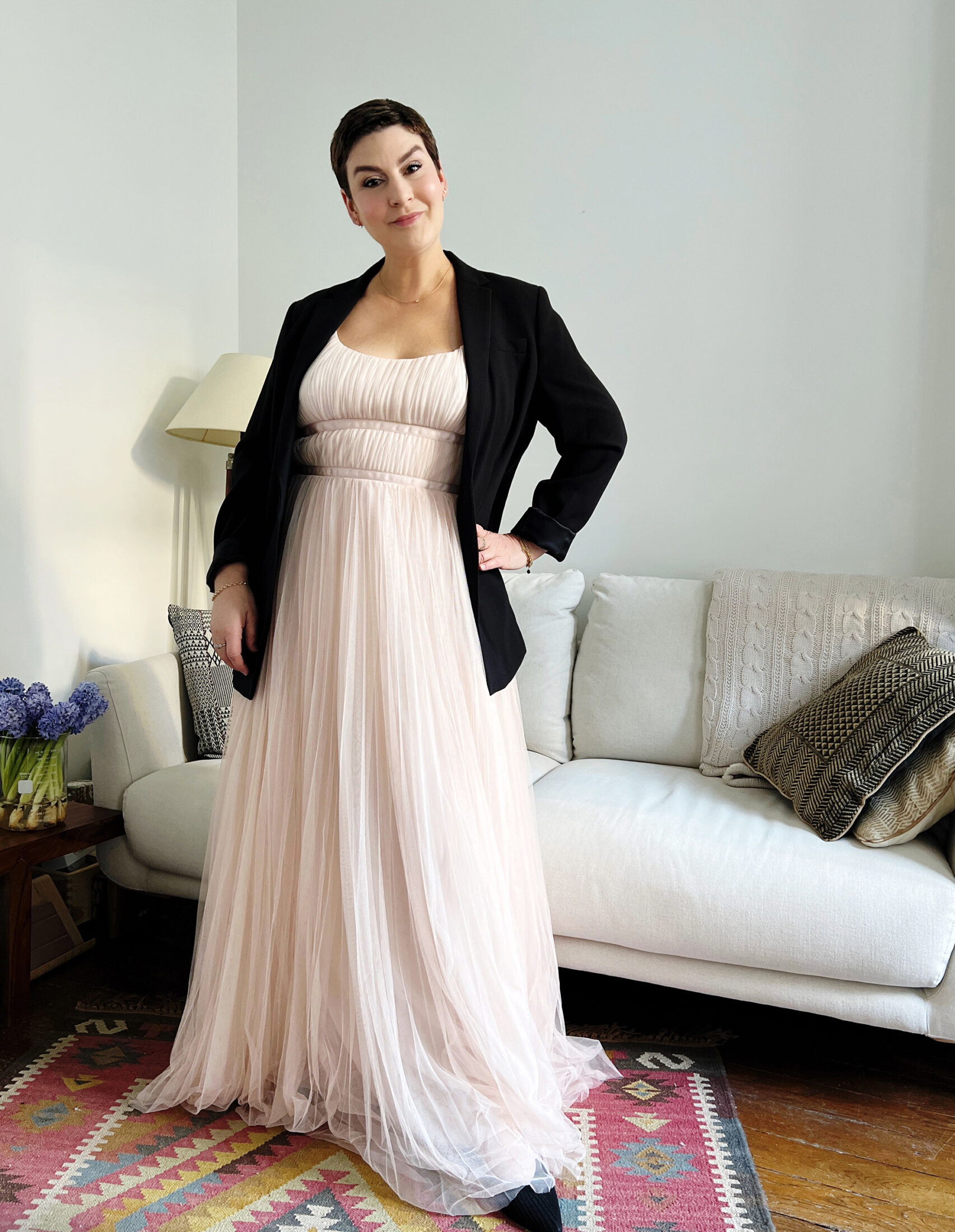 L’accompagner d’un blazer est une excellente idée à laquelle je n’aurais pas pensé.