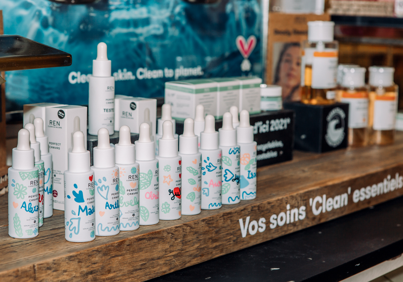 PS 2 : il y a un pop up store Ren au Bon marché jusqu’au 20 janvier (en plus du stand permanent), qui propose plein d’activités autour de ses produits et ses engagements : mini soins et master classes, cadeaux (un produit taille voyage offert pour tout flacon cosmétique vide rapporté, quelle que soit la marque ; un produit taille voyage de votre routine offert pour tout diagnostic de peau – le diagnostic est gratuit).