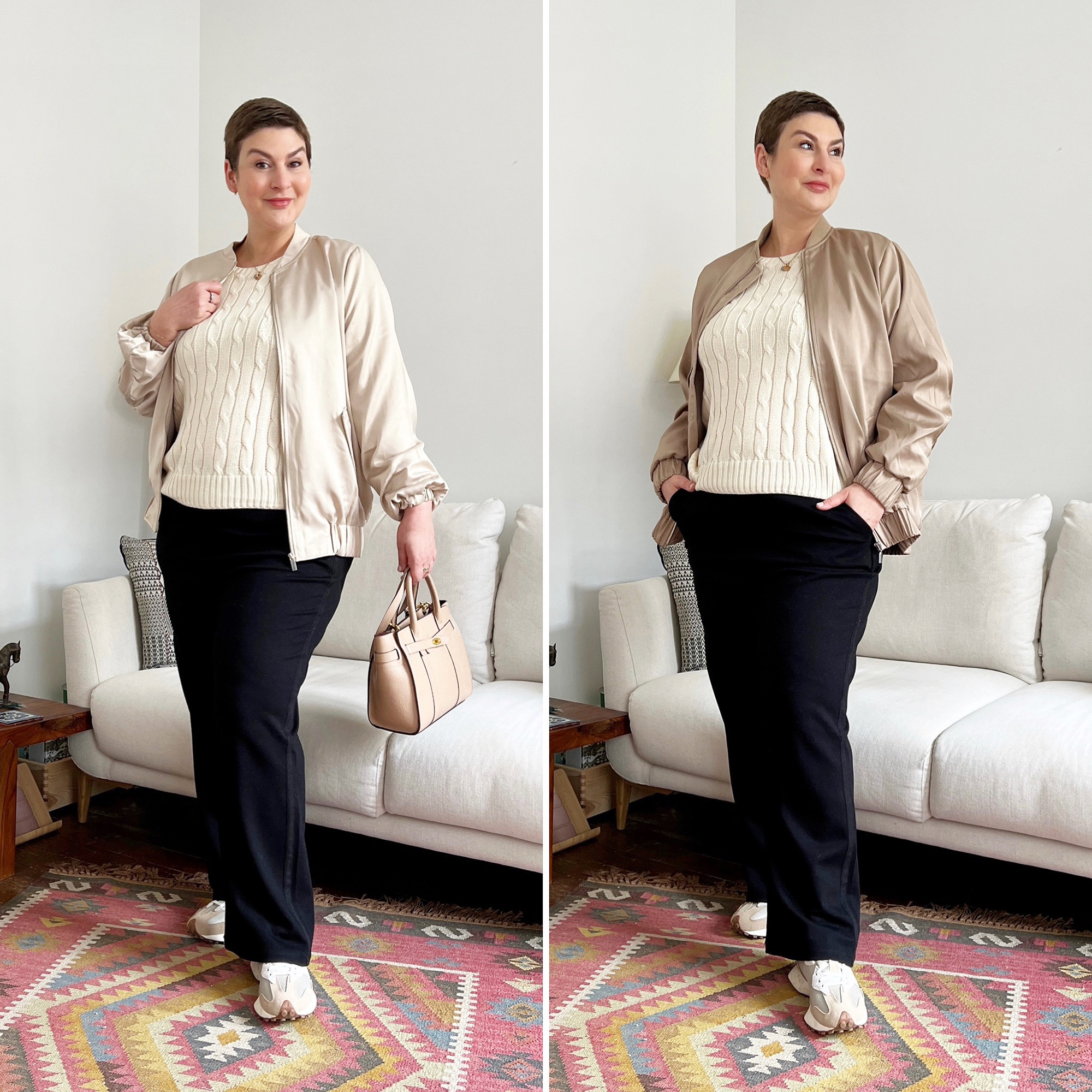 Moi qui est adoptée un style masculin/féminin et baskets depuis des années à 61 ans je n’ai jamais pensé au bomber.