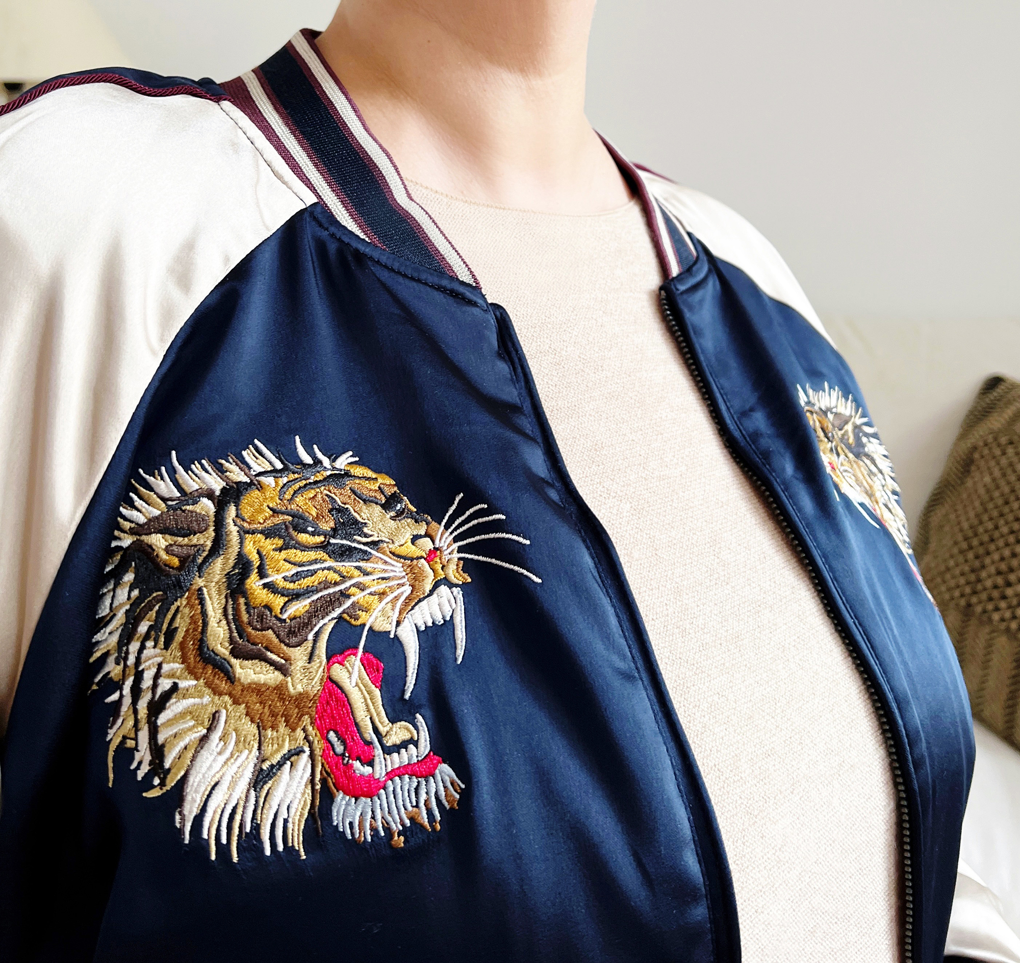 La version rouge est aussi sympa, mais je préfère les tigres, la broderie est hyper réussie.
