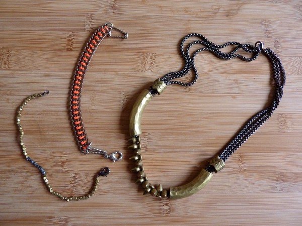 Et puis il y a mes envies personnelles : si j’ai tel collier ou tel bracelet en tête, je le fabrique, je fais ce que j’aime pour moi et je regarde les femmes pour trouver un équilibre avec leurs désirs. La saison joue aussi, j’ai souvent envie de matières plus précieuses l’hiver (les pyrites ou les fameux diamants noirs de ton dernier bracelet ;-), et l’été de couleurs et de textures plus brutes, rappelant le soleil, la terre brûlée (cuivre) ou des pierres lumineuses (quartz, aigue marine, herkimer, pierres de lune..) . J’aime mixer les matières de façon inattendue, avec un goût prononcé pour le métal.