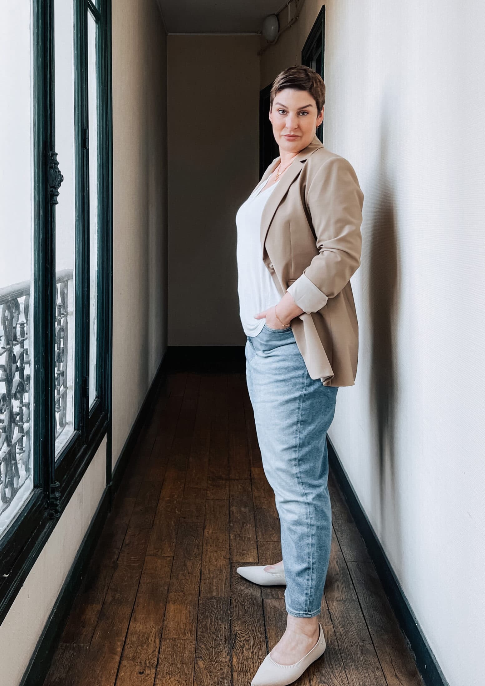 Je ne partage pas ton impression sur ta silhouette avec un jean mom. Avec tout autre vêtement d’ailleurs ! Je trouve que ce jean te va hyper bien, sincèrement. Peut être que dès qu’un vêtement nous plaît, il nous sied ? ;)