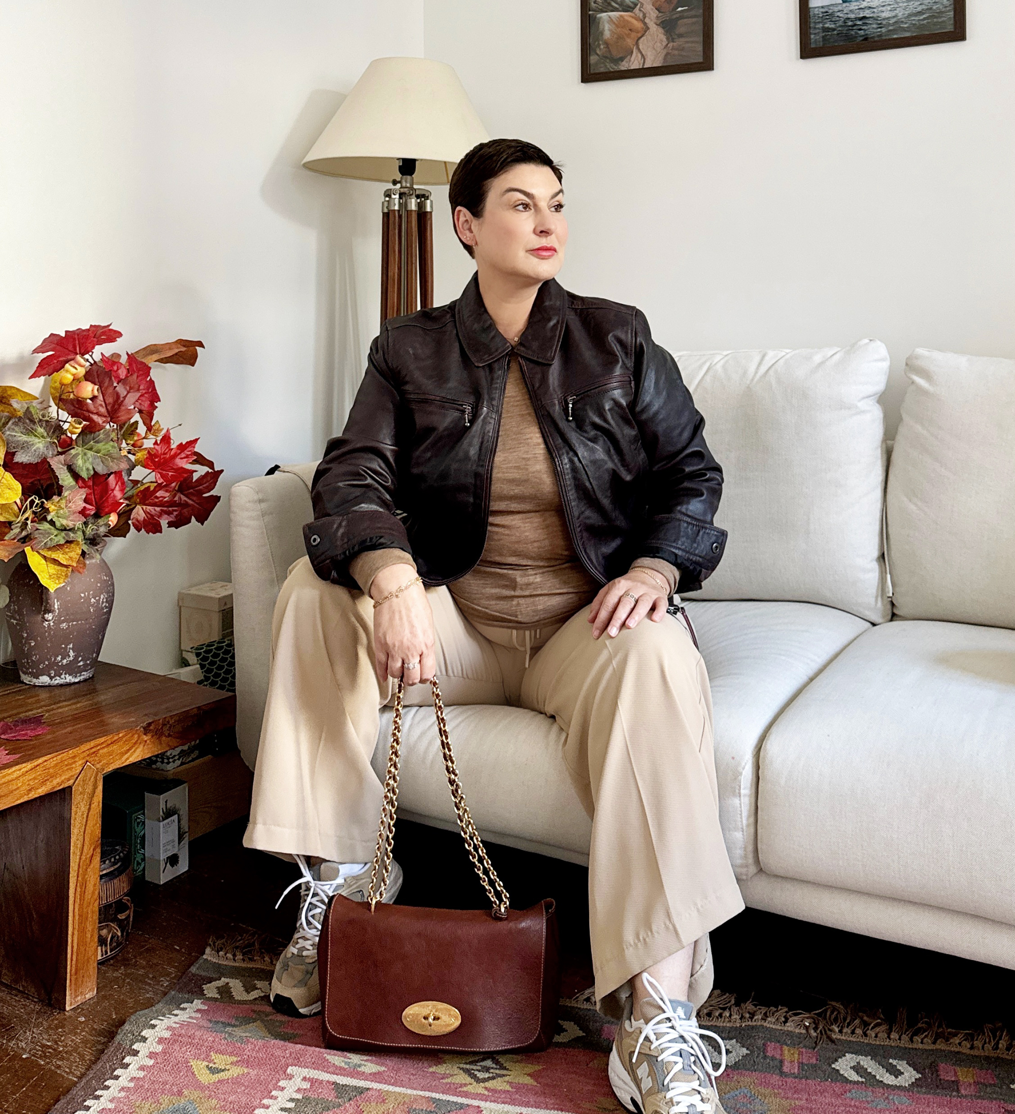 J’ai moutonné ici encore à une vitesse absolument remarquable, et la première pièce que j’ai achetée est ce petit blouson en cuir bordeaux délavé (non il n’est pas marron foncé). Je pense que j’ai rarement collé aussi vite à une tendance ;-)