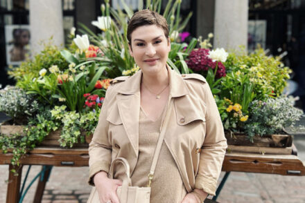 Je trouve que le tee shirt blanc dessous cassé un peu le côté bourgeois de la tenue. C’est chic mais décontracté et ça te vas très.bien !