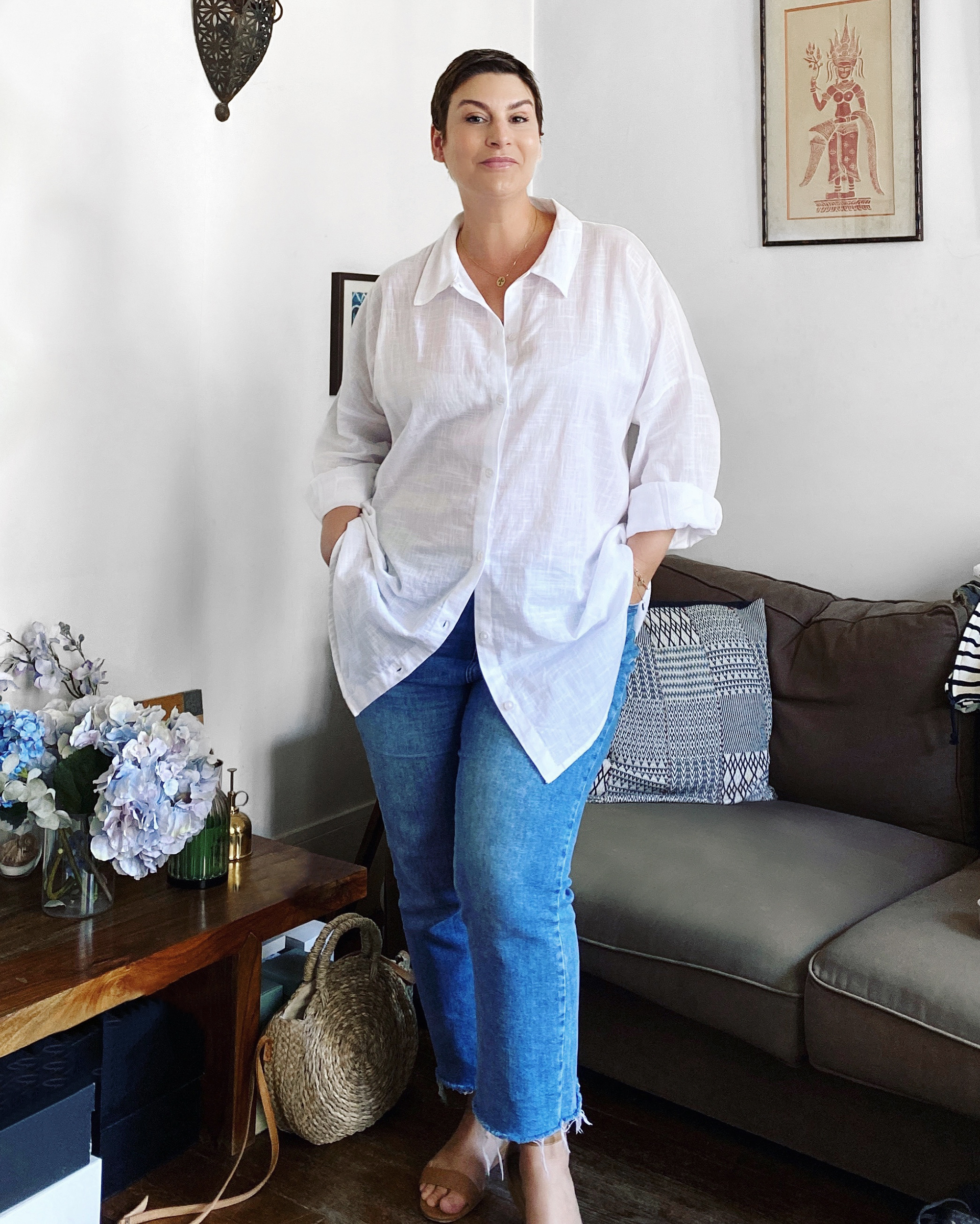 je te trouve canon en chemise en lin et jeans. C’est classe et décontracté à la fois donc pourquoi faire dans la demi mesure 😉
