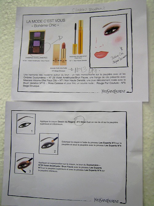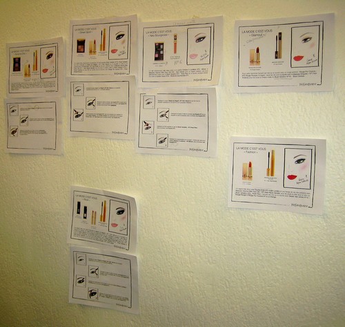 Je vous mets aussi quelques photos, notamment les face charts du maquillage, très précises (un make up par « famille de look ») et pour moi super intéressantes.