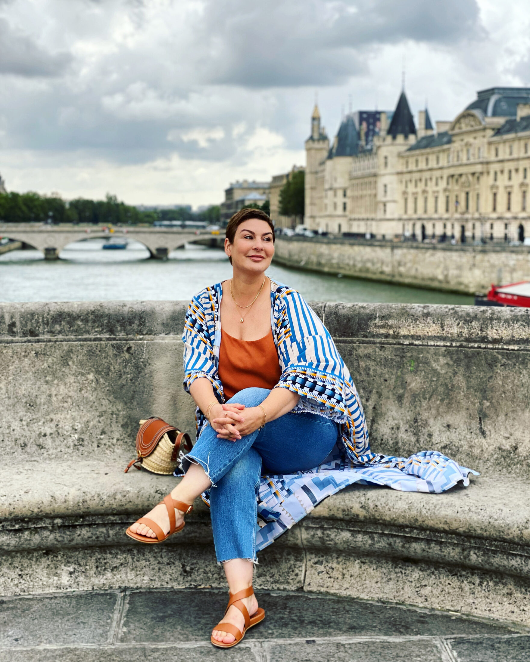 J’adore ton look, le kimono te va à ravir!! Moi en vacances à la maison, je suis souvent en short en coton ultra court et tee-shirt mais si je sors, c’est souvent robes, j’aime tellement ça !! Bonne reprise, ici c’est enfin les vacances depuis vendredi soir et départ demain entre filles pour 5 jours à Arles!!