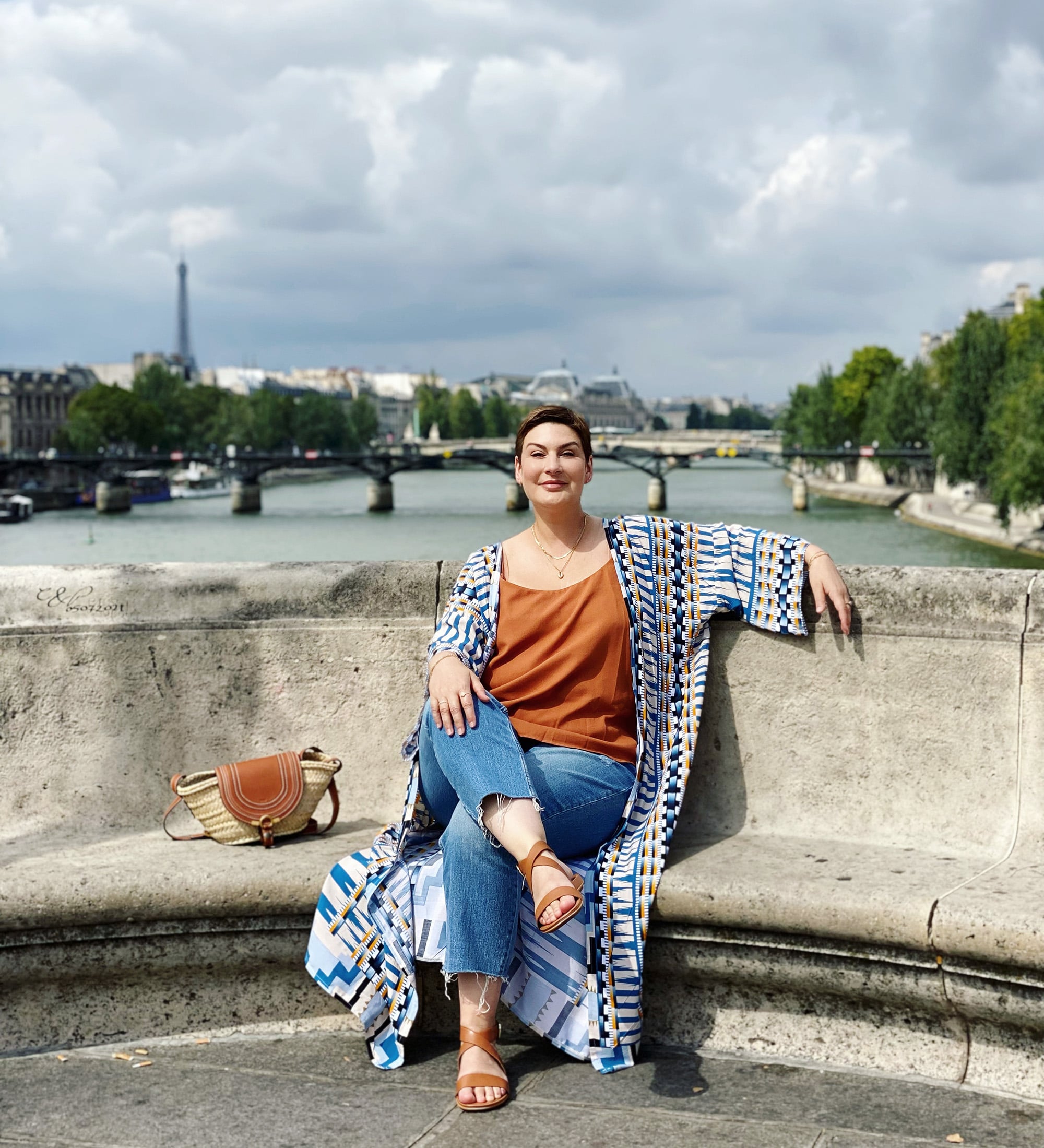 J’aime beaucoup ta tenue c’est une association ultra réussie… porter une pièce forte comme ton kimono sur tes 2 basiques fait toute la différence.