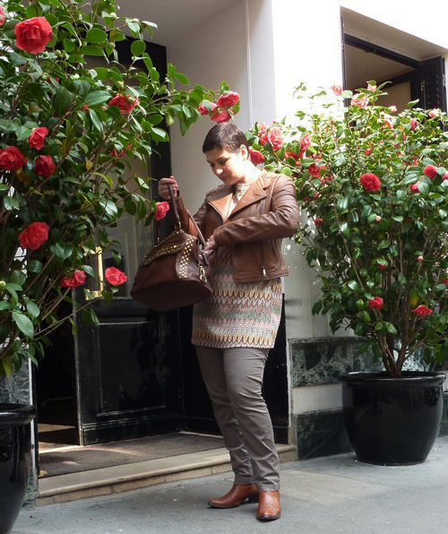 Ca fait quelques années que c’est mon uniforme de printemps, le pantalon moulant avec une tunique dessus (le chudidhar à l’occidentale ?), becôz ni trop chaud ni trop froid, flatteur pour la silhouette (en tout cas la mienne), joli avec n’importe quelle veste en cuir ou en jean, et super confort (ah oui, le confort des fringues pour moi c’est primordial, si c’est pas confort, je porte pas).