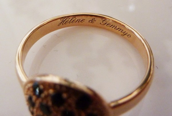 Le « Hélène & Jemmyo » me rappelle mes copines à mon mariage qui me demandait ce qui était écrit dans mon alliance… Pour rire (et pour crâner un peu aussi !) je leur répondais le nom du joailler !