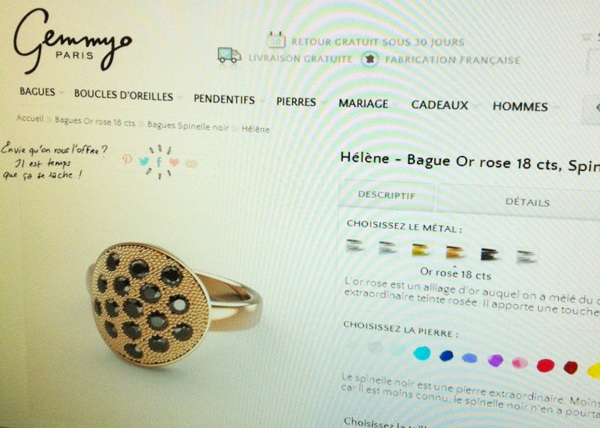 (je vous conseille de jouer un peu avec l’outil de personnalisation de Gemmyo, c’est hyper amusant d’essayer plein de combinaisons, de changer de métal etc – l’argent est beaucoup moins cher que l’or ;-).