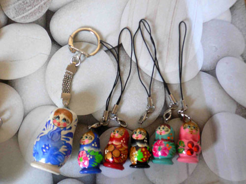 Et, grande nouveauté, sous vos yeux éblouis, le bébé matriochka à accrocher au portable ! (la grosse à côté, c’est pour donner l’échelle).