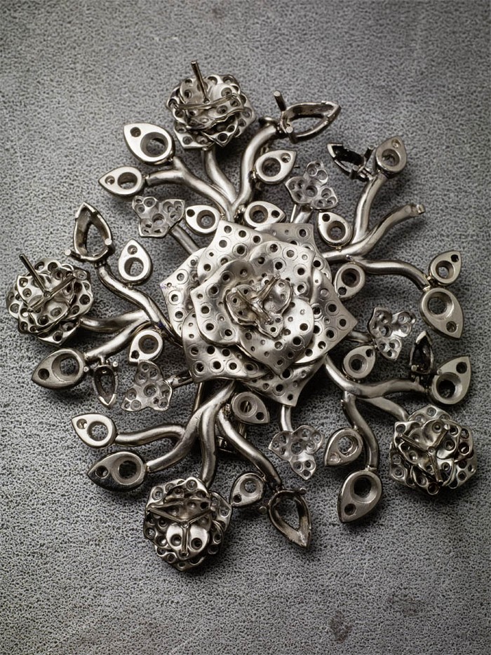 C’est impressionnant de voir sur les deux dernières photos la broche nue et la broche entièrement recouverte de diamants. Il n’y a pas un seul espace non diamanté !