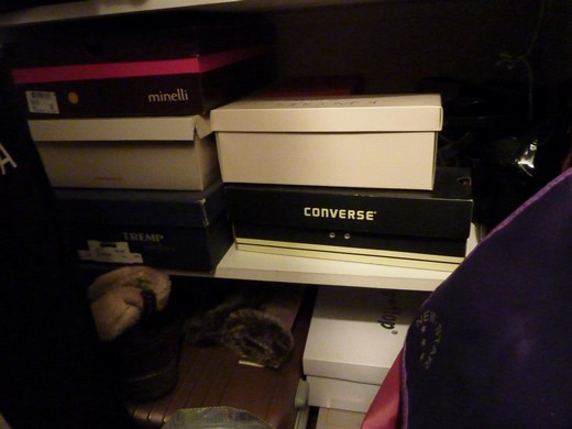 Bon, alors moi, j’ai une toute petite étagère, mes chaussures tiennent toutes dessus et pour cause, je n’en ai plus que 3 paires en ce moment ! les sandales d’été sont rangées, il me reste donc mes ballerines, mes escarpins et une paire de bottines à talons achetée…il y a 2 jours.