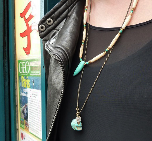 j’adore l’association du voile et du cuir, des studs, des chaines et comme beaucoup, je suis dans ma période « tête de mort ». J’ai consulté le site des bijoux que tu portes mais n’ai trouvé nulle part ce grigri d’inspiration Mexicaine ? peux tu me renseigner ? est ce une création perso ?