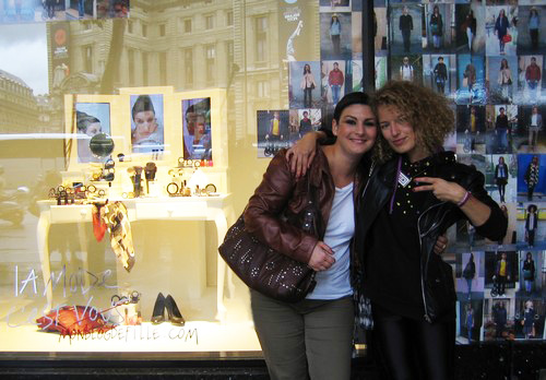 On a fait un petit tour des vitrines avec les bloggeurs dispos (ouiiii, j’ai vu Monsieur Comme un camion, il existe pour de vrai ! ;-), les étalagistes, et Virginie qui s’est occupée de la création des vitrines et qui est une délicieuse jeune femme (avec moi sur la photo) ; je crois que ma vitrine préférée est celle de Marie, marrante et vivante comme tout ! (ah ben non je vous montre pas, je vais pas lui spoiler son truc ;-)