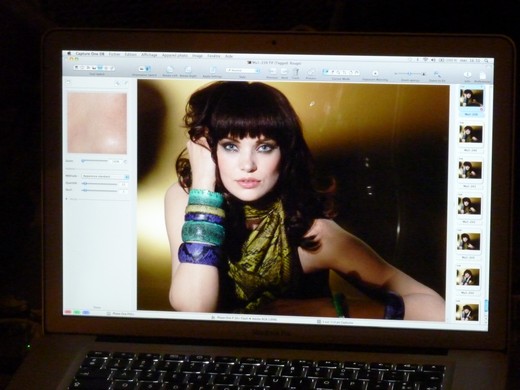 Egalement la comparaison des couleurs entre la photo où le mannequin pose, et celle qui montre la photo sur l’ordinateur, les couleurs rendent très différemment.