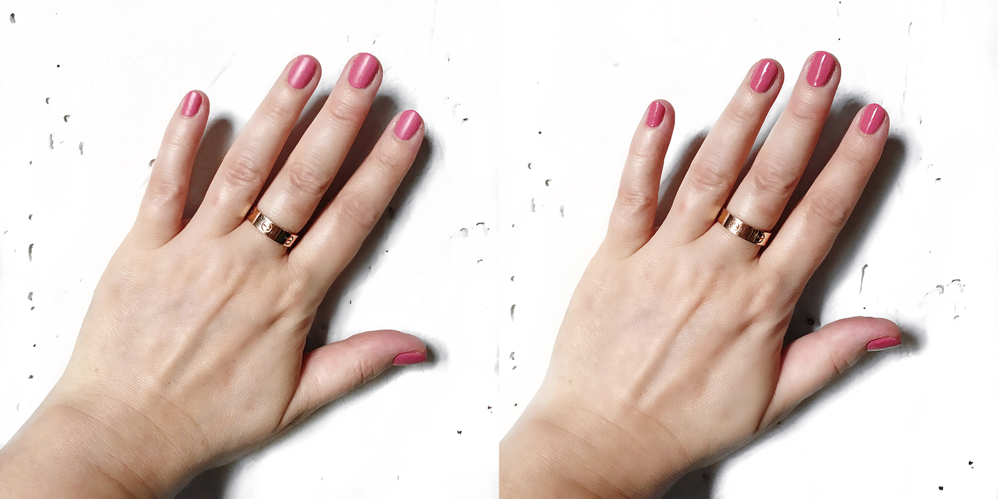 Tout d’abord, toutes les couleurs ne se prêtent pas avec le même bonheur à la version mate, ce qui n’est pas le cas de ce splendide nude qui te fait les mains d’une élégance folle Hélène.