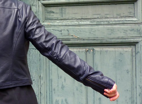 Heu bon, avant de me ruer vers l’or, petite question. En tant que grand saucisson, j’ai des soucis de longueur de bras en général. Les manches de ton perfecto tombent impec, mais as-tu le bras long (non, je ne parle pas de tes relations dans le milieu !), tu n’as pas l’air petite, mais est-ce que d’habitude la manche te pose souci ou pas ? (Si ça ne t’embête pas trop de me donner ce genre de précisions, œuf corse !)