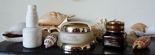 Sur le reste du visage, matin et soir, je termine ma crème Shiseido (vouaye je l’ai presque finie – j’ai la main généreuse avec les crèmes ;-) (vous savez déjà tout le bien que j’en pense).