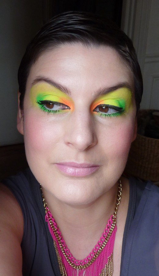 J’avoue que dans la vie de tous les jours je n’oserais pas le porter mais d’ici peut Ma Maman va fêter ses 50 ans et le thème de la soirée c’est le fluo donc pourquoi pas ( si je trouve les couleurs adéquat bien sur ) essayer de reproduire ce maquillage =) !
